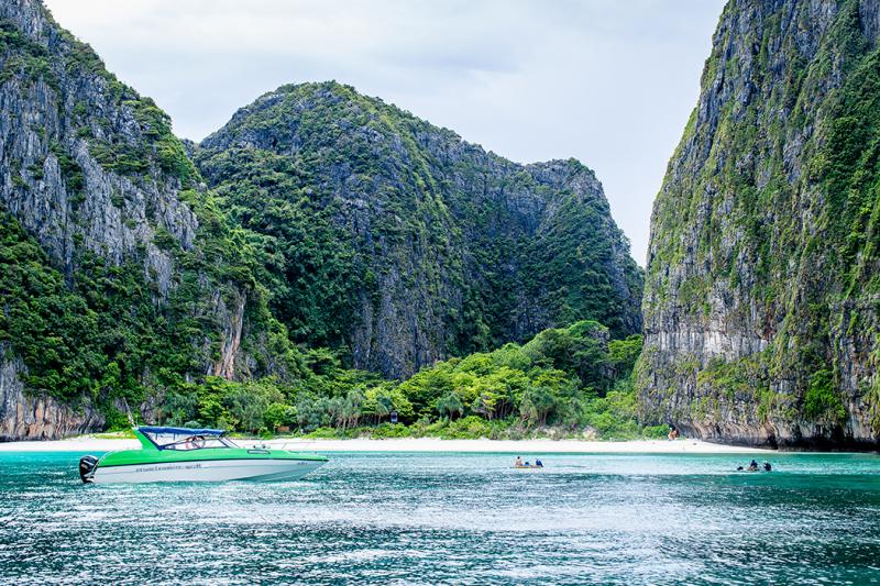 นำท่านสู่ "เกาะพีพีเล" เกาะหินปูนกลางทะเล เป็นเกาะที่ไม่มี ที่พักอาศัย ชม "อ่าวมาหยา" อ่าวที่มีความสวยงาม สถานที่ถ่ายทำภาพยนตร์เรื่อง The Beach จากนั้นนำท่านชม "อ่าวปิเละ" ลากูน ทะเลในแห่งอันดามัน สวยงาม ด้วยหน้าผาหินปูน ตั้งฉากกับน้ำทะเล และผ่านชม "ถ้ำไวกิ้ง" ถ้ำที่ได้รับสัมปทานเก็บรังนกนางแอ่น